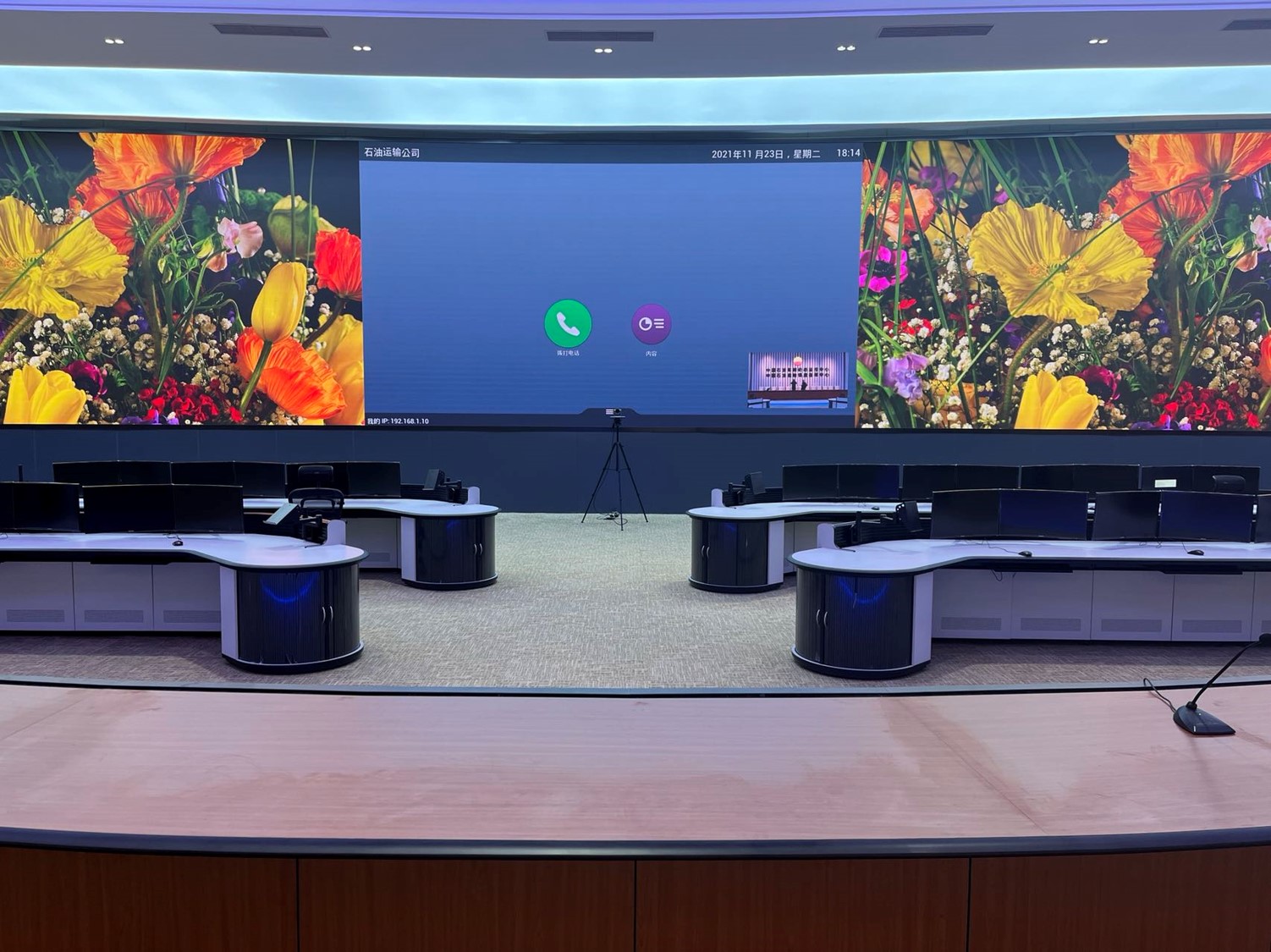 中國石油集團安全環(huán)保技術(shù)研究院1層視頻會議室創(chuàng)新型的運用0.93mmLED顯示屏,不僅滿足單位召開視頻會議室使用,同時可用于超高分圖像的展示工具,對研究院研發(fā)團隊成果展示、實驗過程分析提供保障。同時對現(xiàn)有視頻會議功能進(jìn)行升級,由原來模擬、標(biāo)清視頻會議形式升級為高清、4K會議,